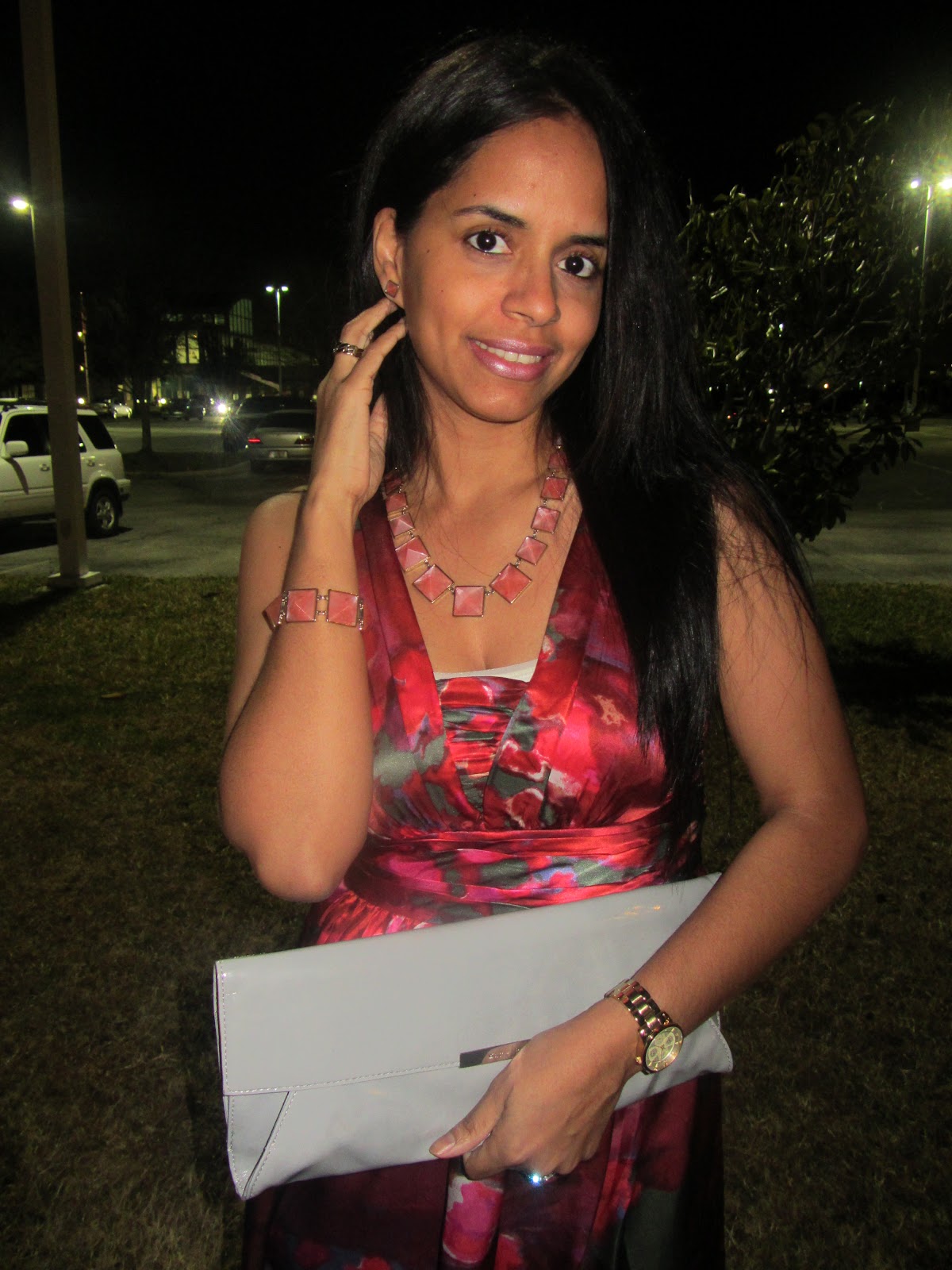 This fuchsia multi - color dress is my most recent purchased and after shortly thinking what shoes to wear with it, my blue shoes came to mind.